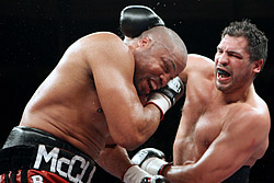 For those following my “Top 166 Heavyweights” project, I found I had to make a slight adjustment. I was finishing up my post for 162, Jameel McCline, only to find out that one of his losses – a wide decision loss to John Ruiz – briefly elevated Ruiz back into the Ring top ten, and per my criteria, counts as another notch against McCline in his “win/loss vs top ten” score. So, this drops McCline down one notch to number 163. I will go ahead and post Jameel’s page with the necessary change, and will edit the Alex Miteff post to reflect his slight promotion to 162.